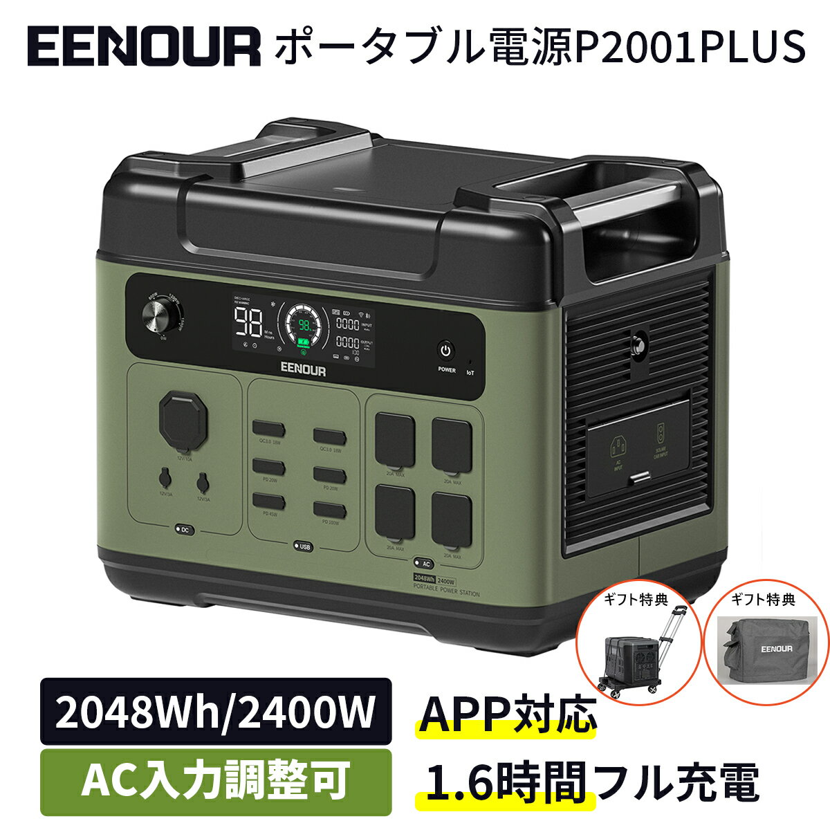 たとえばEENOUR P2001PLUSは、2400Wの出力で幅広い用途に対応できるため、防災用電源として非常に頼りになります。
